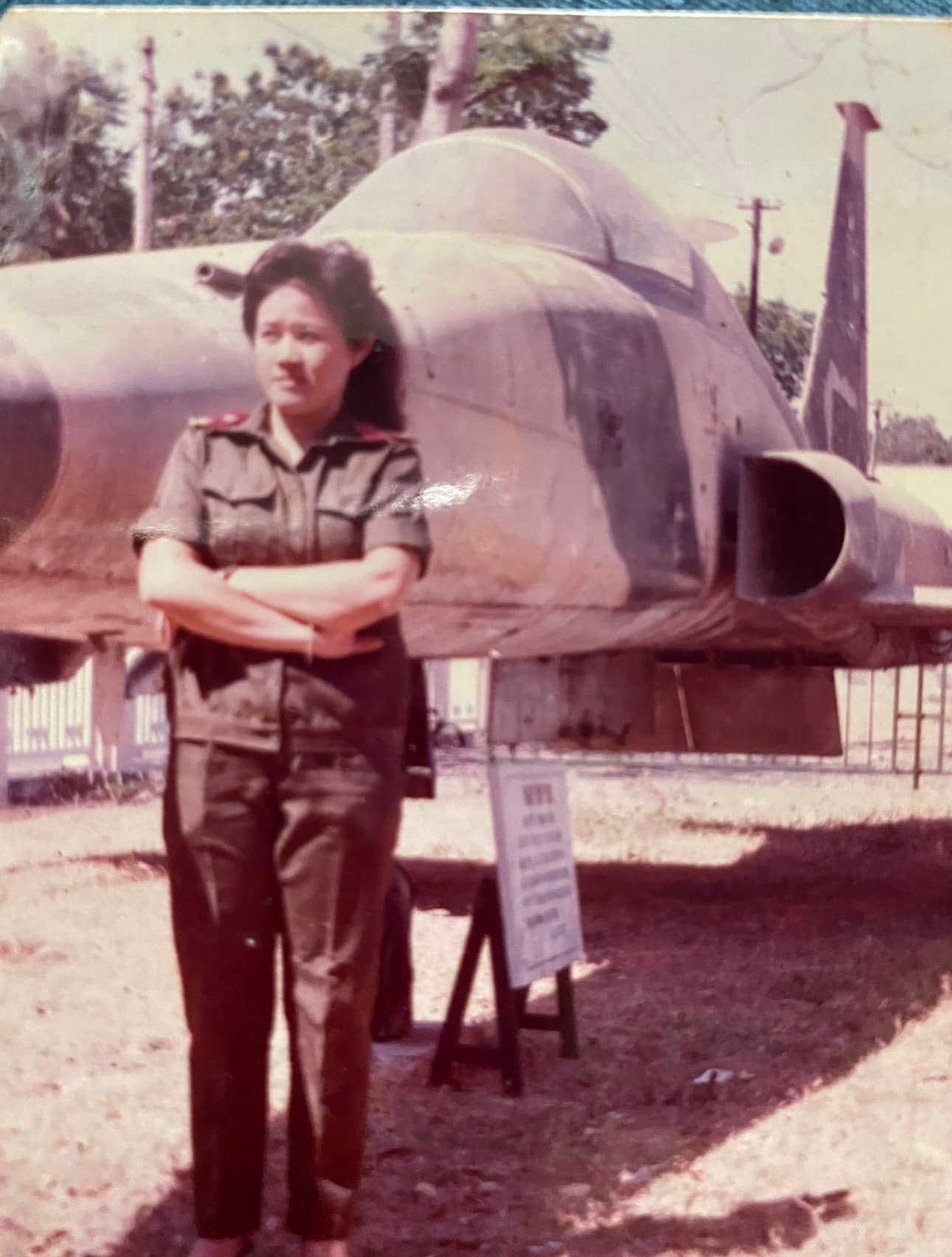 Ca sĩ Hạ Châu ở chiến trường Campuchia. Ảnh: Tư liệu