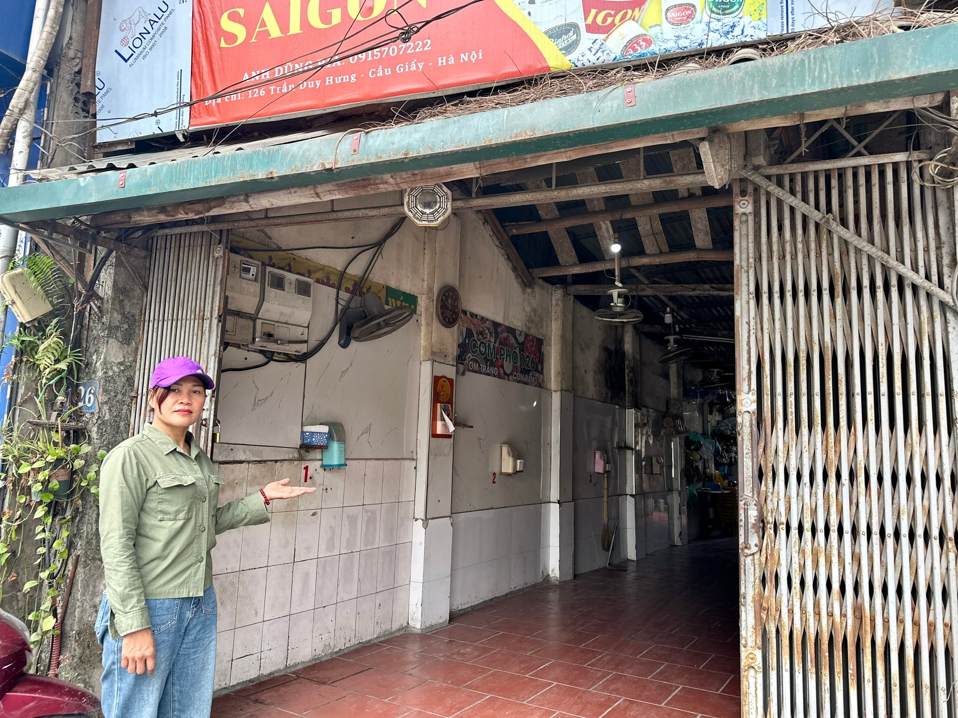 Chị Nguyễn Thị Mai Hoa trước ngôi nhà của mình ở số 126 Trần Duy Hưng. Ảnh: PV