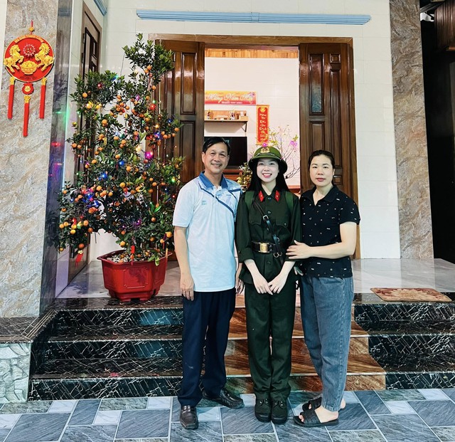 Quyết định viết đơn tình nguyện tham gia nghĩa vụ của Trâm nhận được sự ủng hộ từ gia đình. Ban đầu, người thân không khỏi lo lắng khi con gái lựa chọn môi trường nhiều áp lực và kỷ luật nghiêm khắc. Tuy nhiên, trước sự quyết tâm và suy nghĩ chín chắn của Trâm, gia đình đã trở thành điểm tựa tinh thần vững chắc, động viên em tự tin bước vào chặng đường mới.