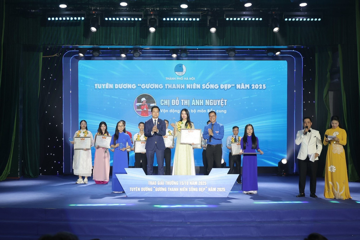 Hội Liên hiệp Thanh niên TP Hà Nội vừa tuyên dương các gương "Thanh niên sống đẹp" năm 2025, trong đó vận động viên bắn cung Đỗ Thị Ánh Nguyệt được vinh danh vì những đóng góp tích cực trong lĩnh vực thể thao.