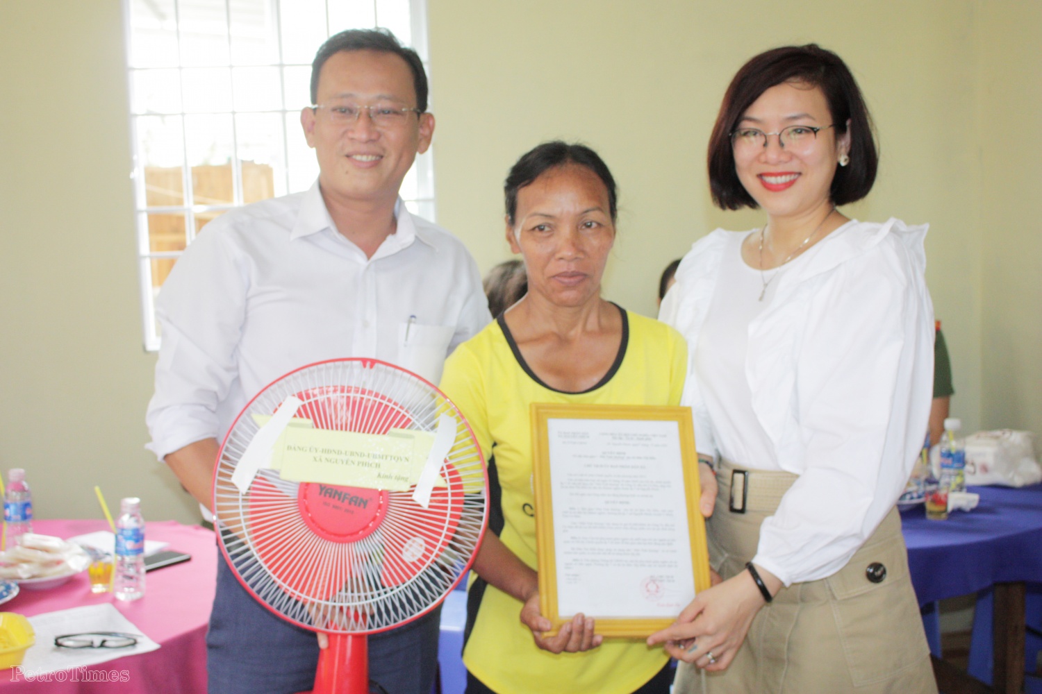 Đồng chí Nhã Phương đại diện Chi nhánh Khí Tây Nam Bộ trao tặng xe đạp, hỗ trợ các em học sinh có hoàn cảnh khó khăn vươn lên trong học tập.