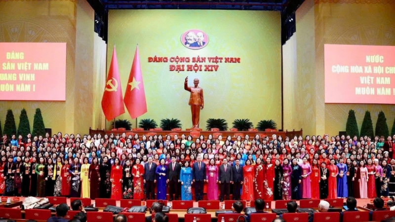 Lãnh đạo Đảng, Nhà nước chụp ảnh với các nữ đại biểu dự đại hội.