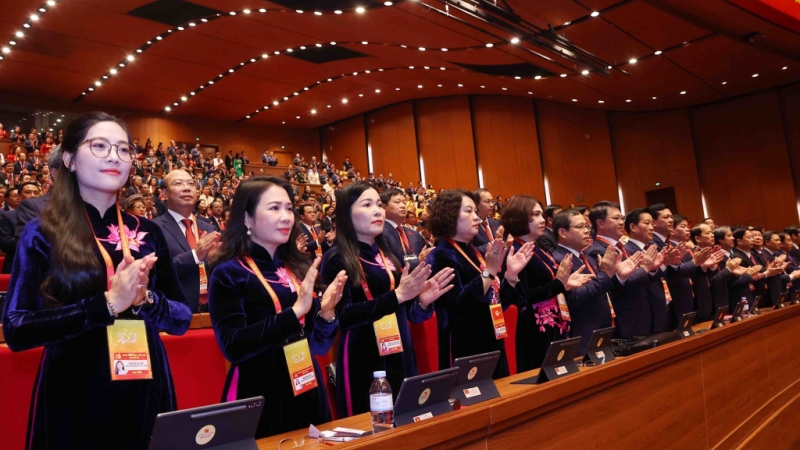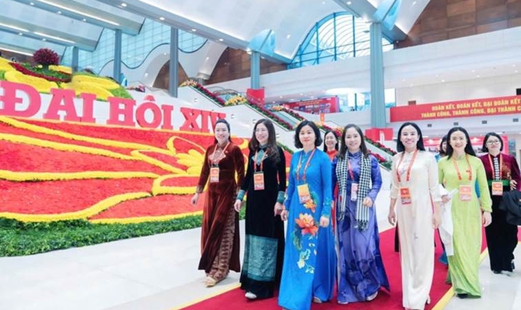Các đại biểu nữ tại phiên khai mạc đại hội.