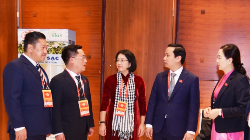 Đồng chí Võ Thị Ánh Xuân, Ủy viên Trung ương Đảng, Phó Chủ tịch nước trò chuyện cùng các đại biểu tham dự Đại hội.