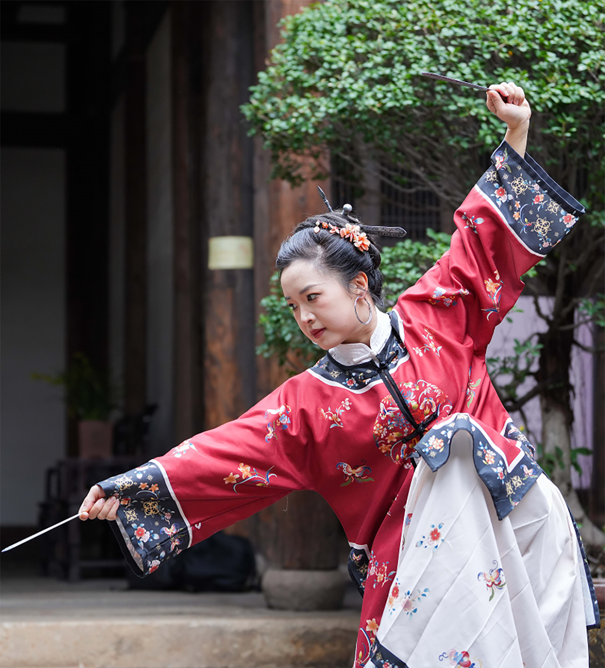 Đồng thời vận dụng nội gia quyền của phái Tam Phong, sáng tạo các biến chiêu như “Cô Xạ Tiên Tử”, “Sáp Nhi Phục Thiêu”, khiến bán kính tấn công của mỗi cây trâm kéo dài tới 1,2 mét, vừa thực dụng trong thực chiến, vừa đẹp mắt khi biểu diễn.