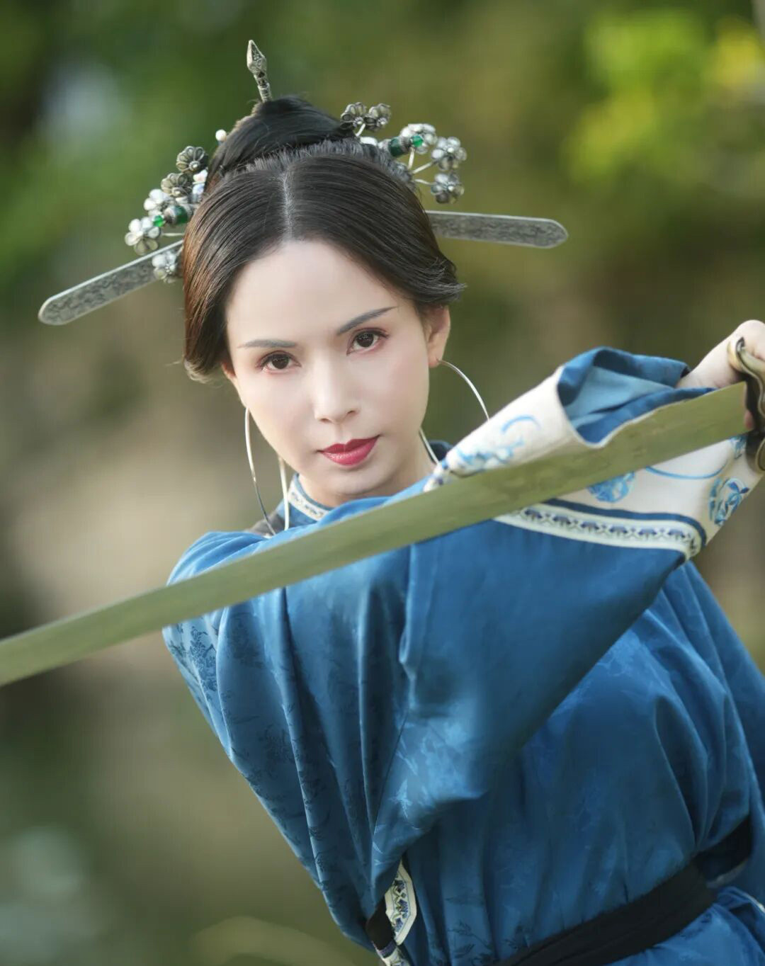 Thiên Nguyệt giới thiệu: thân trâm vừa dẻo dai vừa có lực xuyên mạnh, đầu trâm chạm khắc hoa văn có thể phá áo khóa cổ họng, đuôi trâm có vân xoắn ốc giúp cầm nắm chắc chắn hơn. Trâm pháp của cô còn khôi phục lại câu chuyện lịch sử thời Minh: phụ nữ Phúc Châu dùng trâm cài tóc đánh đuổi giặc Oa, tái hiện các chiến pháp dân gian như tẩm độc ở đầu trâm, giấu lưỡi dao trong búi tóc…