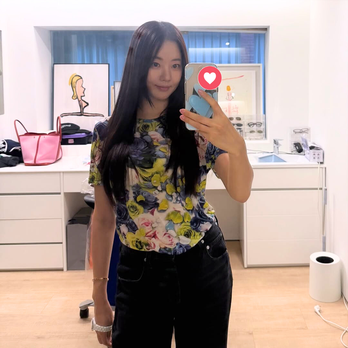 Trong bức ảnh, Kim Sa Rang diện áo thun họa tiết rực rỡ kết hợp quần jeans, khoe khéo vòng eo thon và làn da căng bóng. Bên cạnh đó, người đẹp không ngần ngại khoe mặt mộc khi chụp hình.