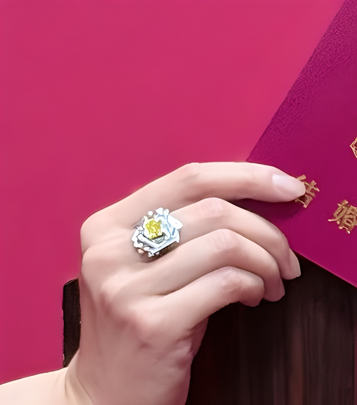 Tuy nhiên, tâm điểm chú ý không nằm ở nghi lễ hay khung cảnh mà chính là chiếc nhẫn cầu hôn lấp lánh trên ngón tay áp út của Lý Thuần - viên kim cương vàng có giá trị tương đương 540.000 bảng Anh (hơn 19 tỷ đồng).