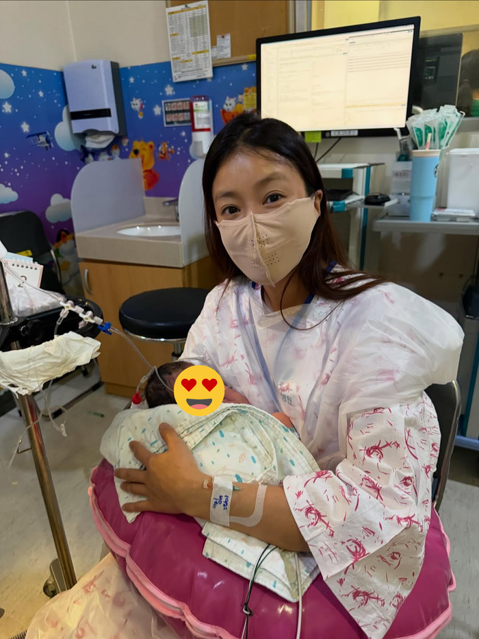Nữ diễn viên Lee Si Young hạnh phúc chụp ảnh với nhóc tỳ vừa mới chào đời. Ảnh: IGNV