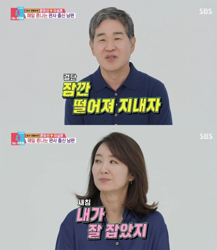 Trong phần phỏng vấn riêng, Lee Sung Ho thừa nhận hai vợ chồng từng cãi nhau rất dữ dội. Yoon Yoo Sun cũng không né tránh khi phân tích nguyên nhân: “Chúng tôi cãi nhau nhiều vì khác lập trường. Anh ấy quen phân xử đúng - sai như ở tòa án. Tôi từng nói thẳng: ‘Đây không phải là pháp đình, chỉ là hai người có quan điểm khác nhau’”.