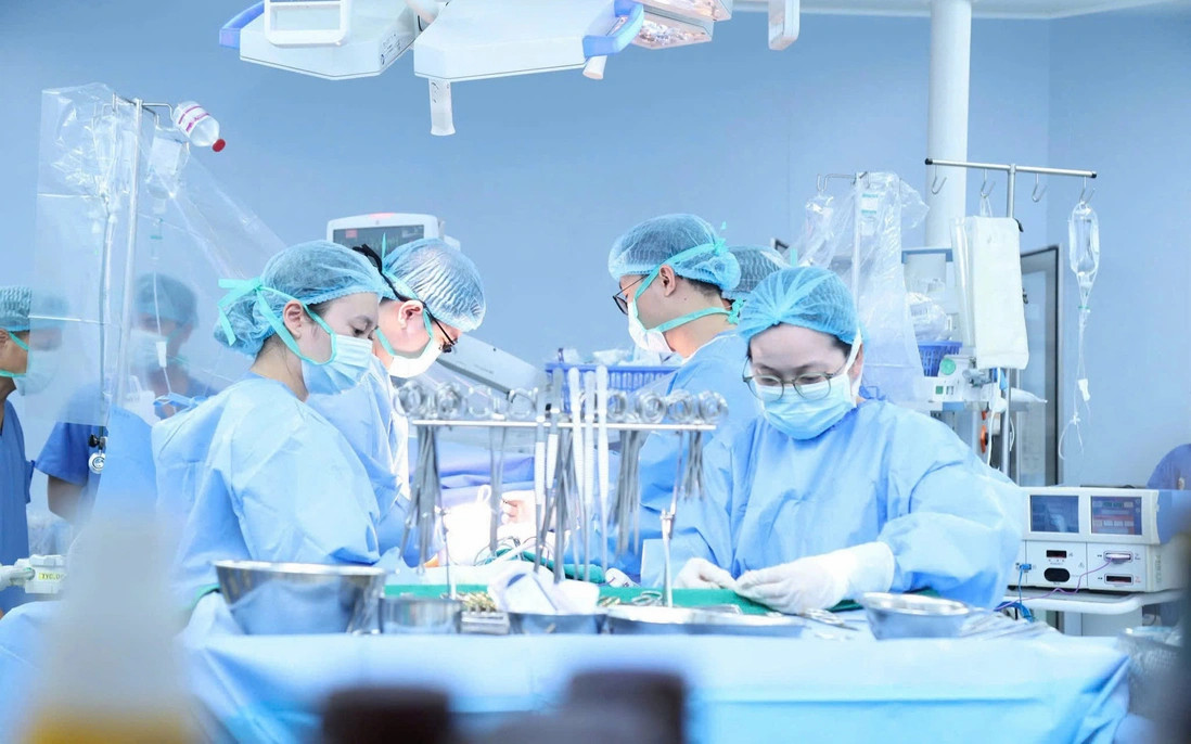 Các bác sĩ thực hiện lấy tạng từ người hiến. Ảnh BVCC.