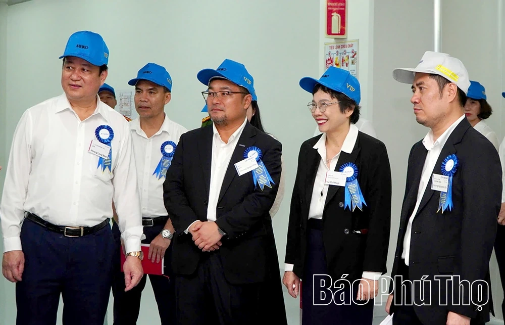 Doanh nhân Vũ Thị Hợp với các nhà đầu tư Nhật Bản tại KCN bờ trái sông Đà (phường Hòa Bình).