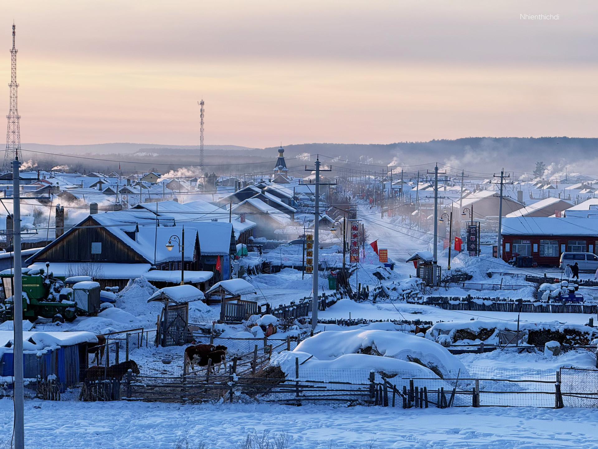 "Ngôi làng rất nhiều ngựa. Lông và mũi, miệng của chúng đều đóng băng. Mình được biết, ngựa vùng Hắc Long Giang có bộ lông dầy hơn bình thường và tim, phổi cũng khỏe hơn nên có thể chống chọi được cái lạnh. Nhưng thật sự, nhìn đàn ngựa ở đây thấy thương vì bao quanh toàn là tuyết", Nga kể.