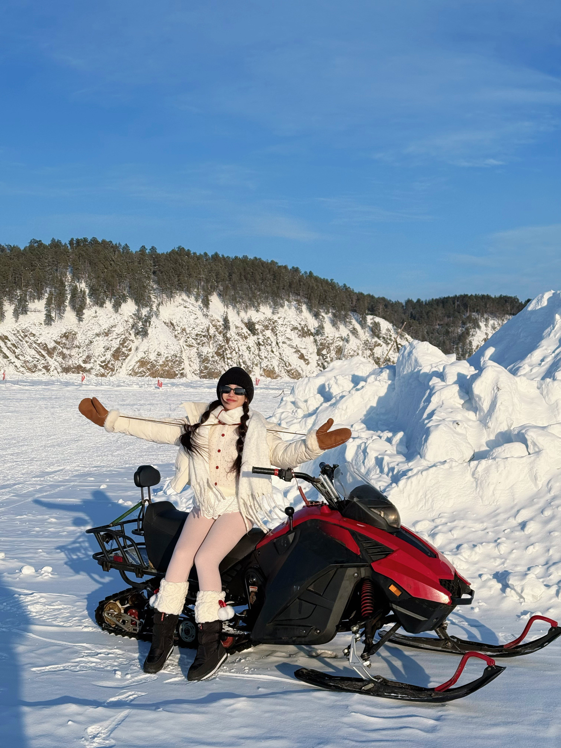 Hoàng Nga dành 4 ngày ở ngôi làng Bắc Hồng phủ tuyết trắng xóa
