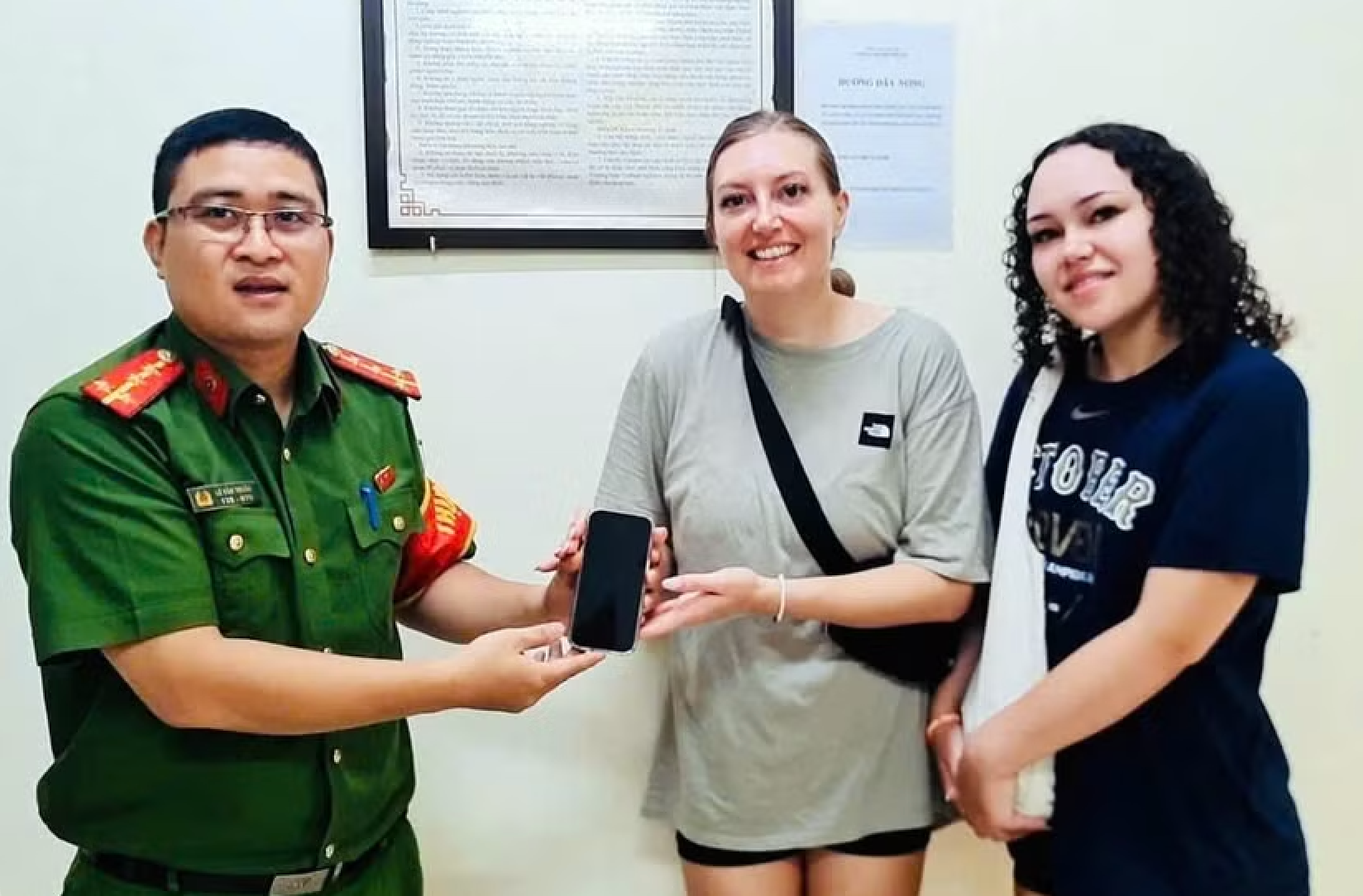 Sáng 15/4/2026, tại trụ sở Công an phường Hồng Hà, chiếc điện thoại đã được trao trả tận tay chị Lydia trước sự chứng kiến của những người bạn đồng hành. Nhận lại tài sản tưởng chừng đã thất lạc, nữ du khách không giấu được niềm vui và sự xúc động.