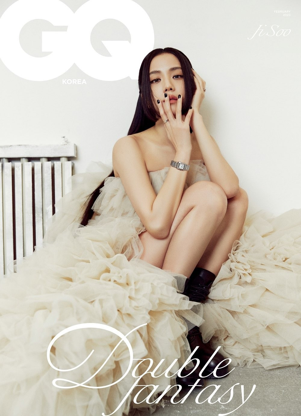 Trên 4 phiên bản bìa, Jisoo phối trang phục theo hướng tối giản, tập trung làm nổi bật trang sức cao cấp do cô làm .