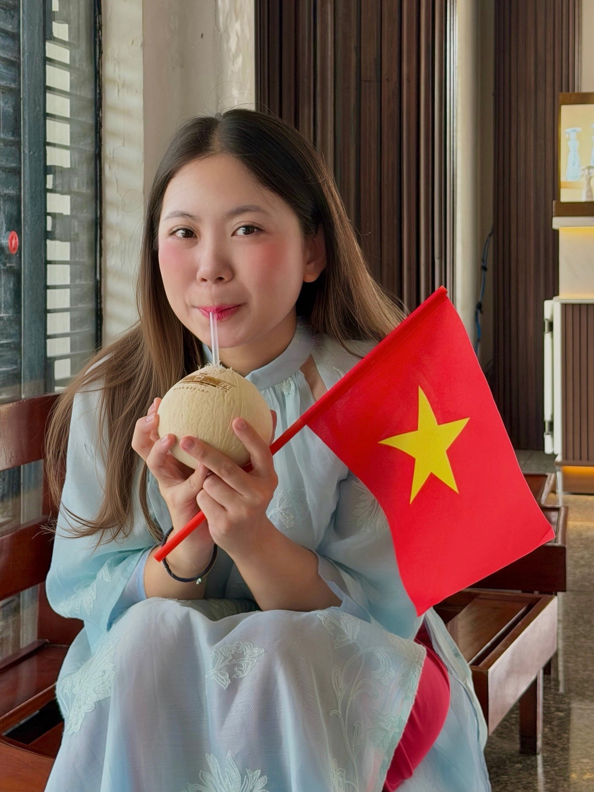 Trong chuyến tham quan các di tích lịch sử nổi tiếng tại TP.HCM, Mạch Khanh đã lựa chọn trang phục áo dài truyền thống, thể hiện tình yêu với văn hóa dân tộc. (Ảnh: FBNV)