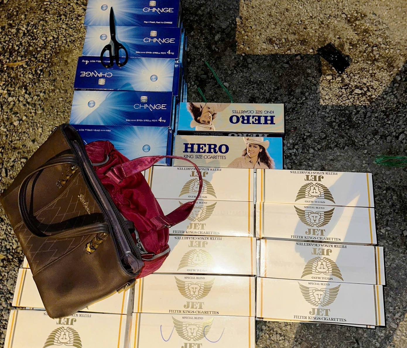 Qua kiểm tra, lực lượng chức năng phát hiện trên xe chở theo hai hành khách là bà Hồ Thị Lan Chi (SN 1969, trú tại đường Chi Lăng, TP Huế) và bà Trần Thị Tuyết (SN 1963, trú tại đường Nguyễn Thiện Thuật, TP Huế). Hai người này mang tổng cộng 130 cây thuốc lá điếu nhập lậu (với 1.300 bao), gồm 70 cây thuốc hiệu JET, 10 cây Hero và 50 cây Esse Change.