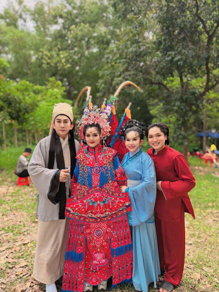 Từ trái sang: NS Bình Tinh, NSƯT Kim Tử Long, NS Bo Bo Hoàng và Hiếu Cảnh trong MV cải lương – tuồng cổ "Huỳnh Yến Dao Trì Cung"
