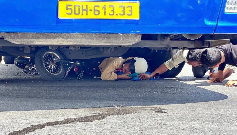 Cú va chạm khiến cả em P và chiếc xe đạp điện bị cuốn xuống gầm xe khách. Rất nhiều người dân địa phương đã tìm cách đưa em học sinh ra ngoài chuyển đến bệnh viện cấp cứu.