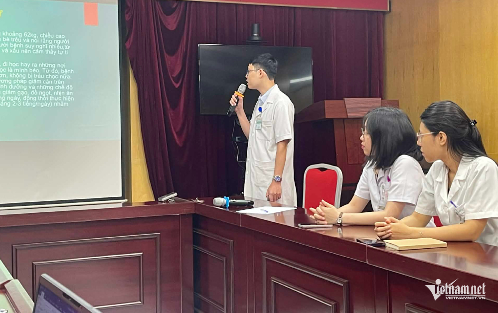 Một tháng trước khi nhập viện, H. chỉ còn 45kg. Dù gia đình khuyên ngừng ăn kiêng và tập luyện điều độ, H. vẫn lo sợ tăng cân, chỉ ăn vài thìa cơm trắng mỗi ngày, gần như không nạp protein. Chiều nhập viện, H. ngất tại nhà, được đưa đến Bệnh viện Bạch Mai. Tại đây, em chỉ còn 42kg, BMI 16,4, mạch chậm, ăn uống kém. Qua thăm khám, H. được chẩn đoán mắc chứng chán ăn tâm thần, có biểu hiện sụt cân nhanh, ám ảnh tập thể dục để giảm cân.