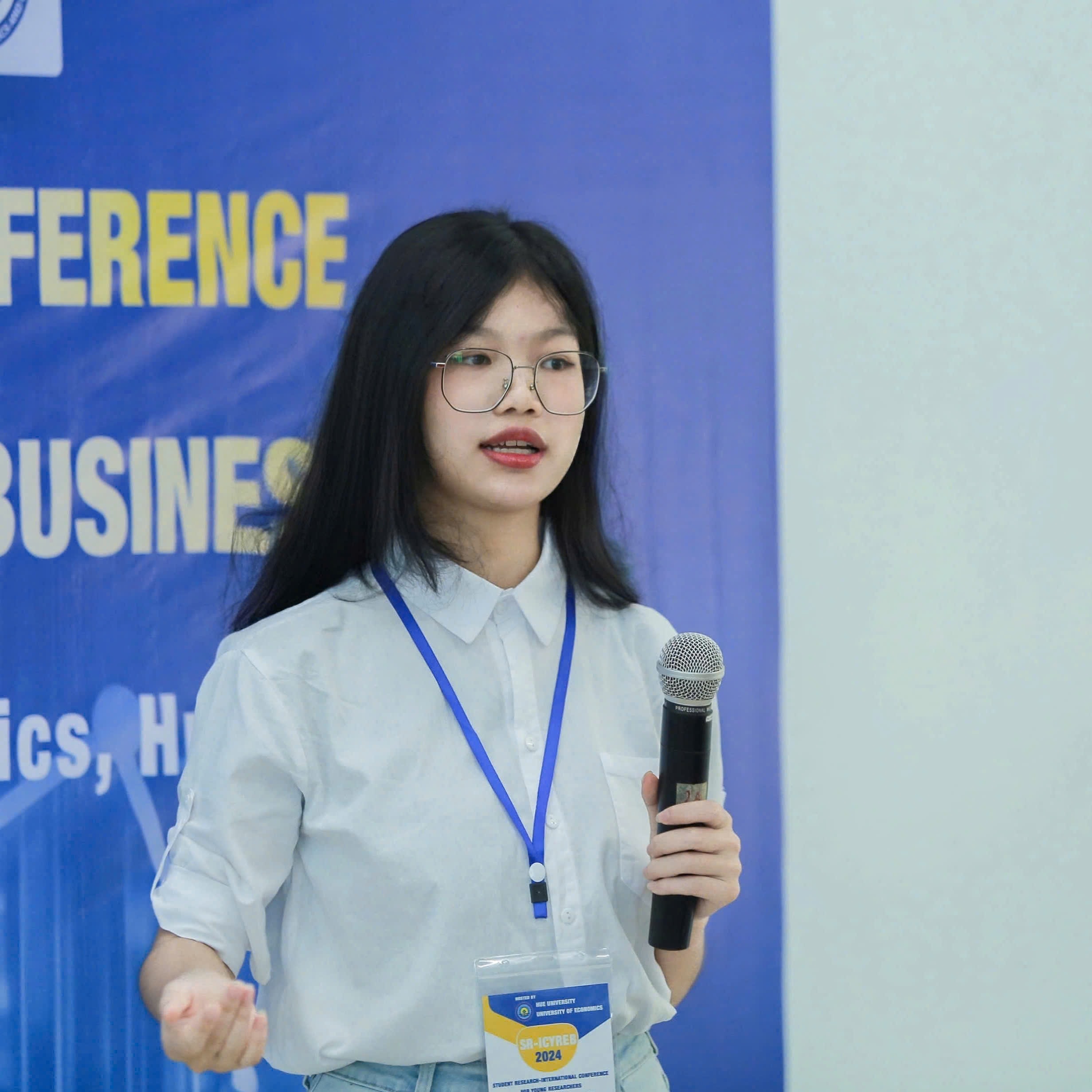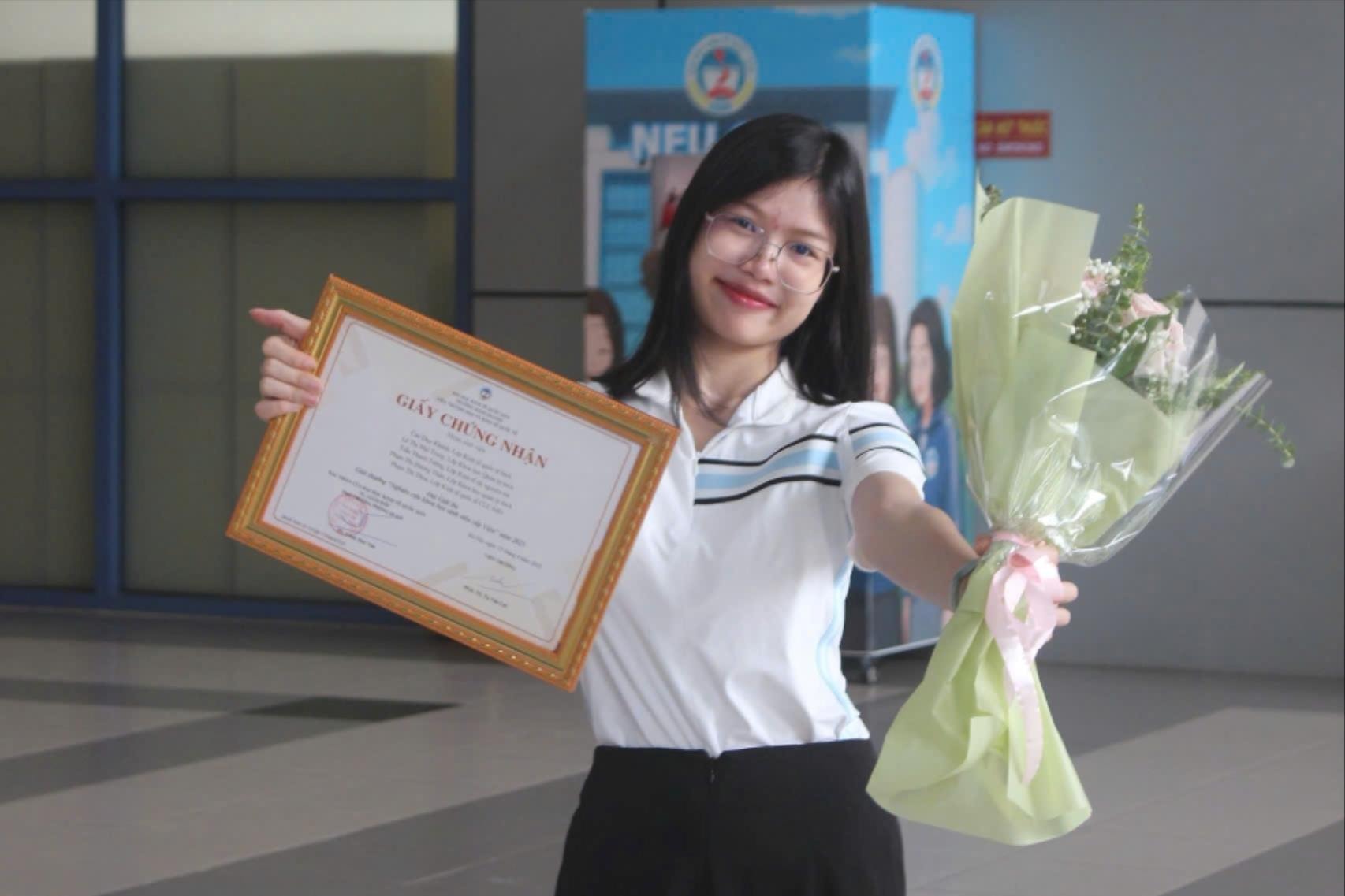 Trang đạt giải tại cuộc thi Sinh viên nghiên cứu khoa học. Ảnh: Nhân vật cung cấp