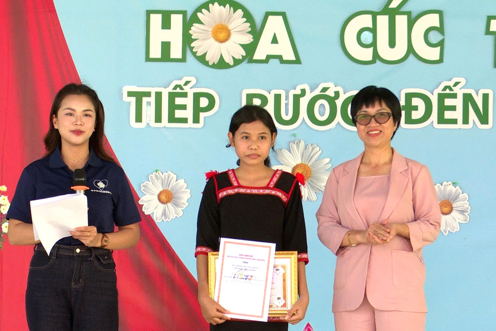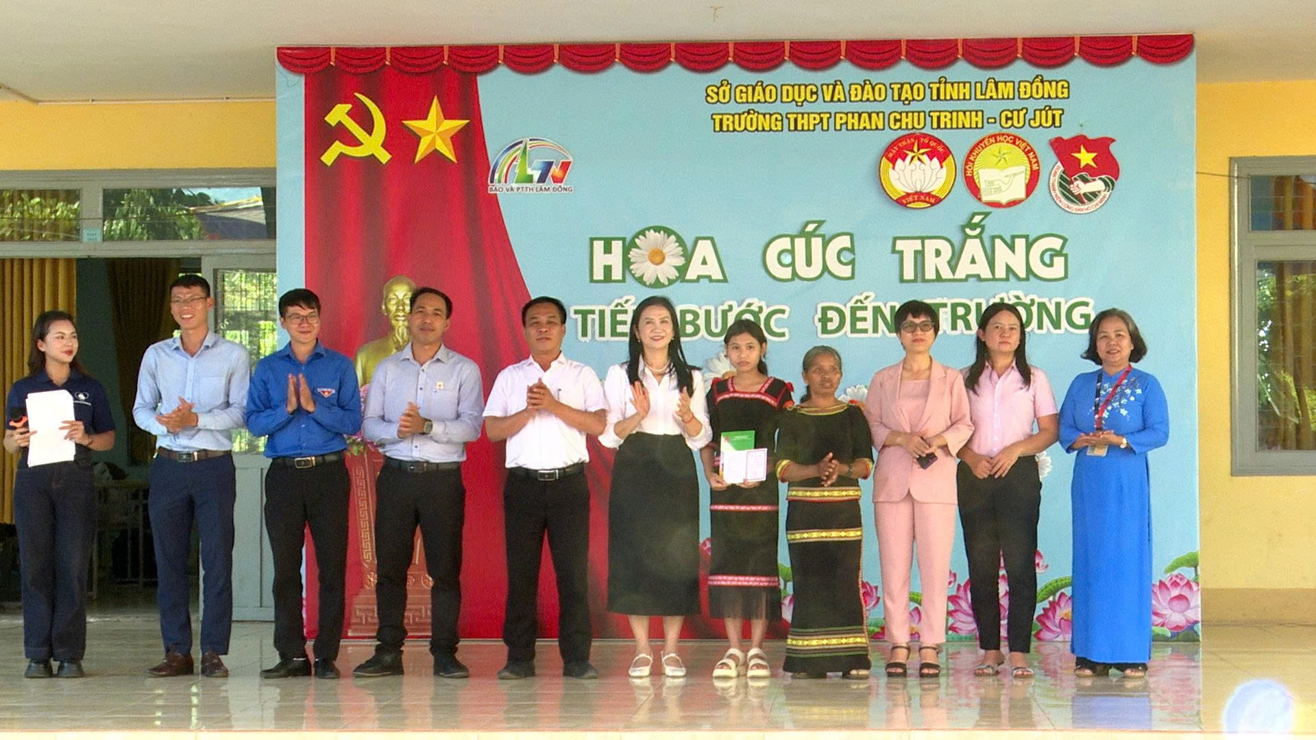 Chiều 31/12, tại Trường THPT Phan Chu Trinh, xã Cư Jút, Báo và Phát thanh, Truyền hình Lâm Đồng phối hợp Ủy ban MTTQ tỉnh, Hội Khuyến học tỉnh và Tỉnh đoàn Lâm Đồng tổ chức chương trình trao học bổng Hoa Cúc trắng - Tiếp bước đến trường cho em H’Sam B’Krông, học sinh lớp 10A1.