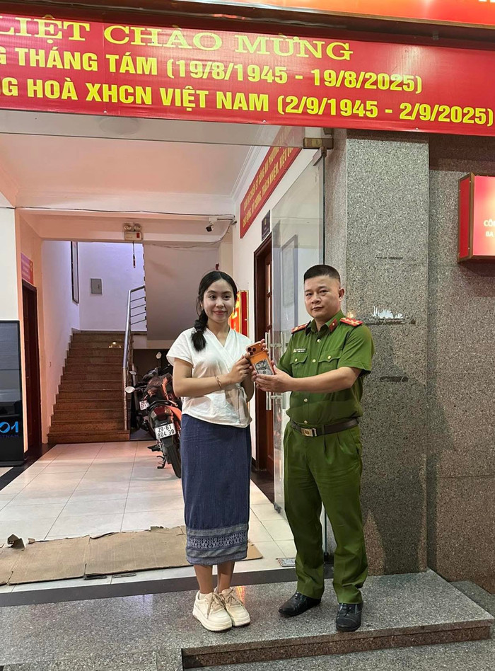 Nữ du học sinh Lào đã nhận lại chiếc điện thoại iPhone 17 của mình. Ảnh: Công an TP Hà Nội