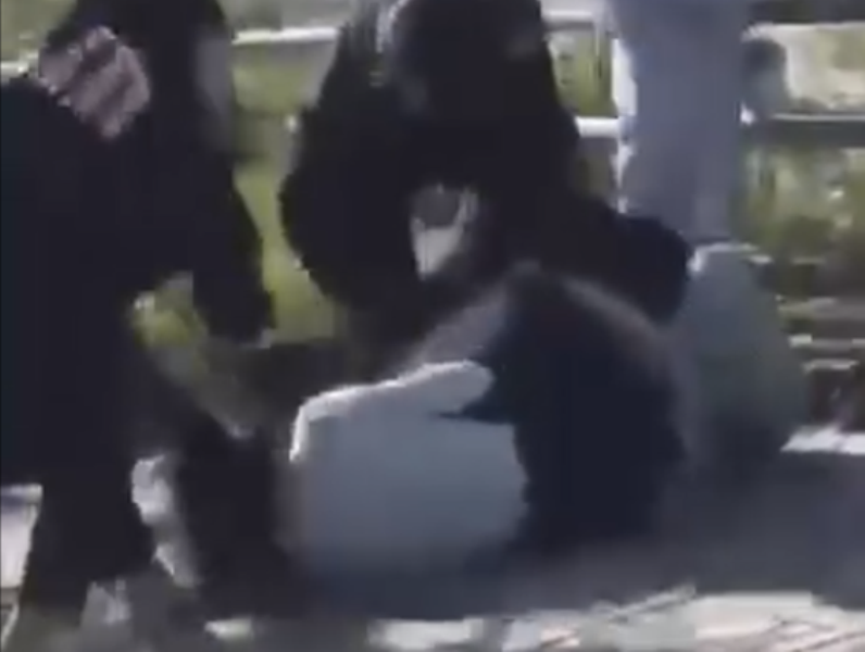 Em N. bị 3 học sinh lớp 8 Trường THCS Nguyễn Bỉnh Khiêm vây đánh. Ảnh cắt từ clip