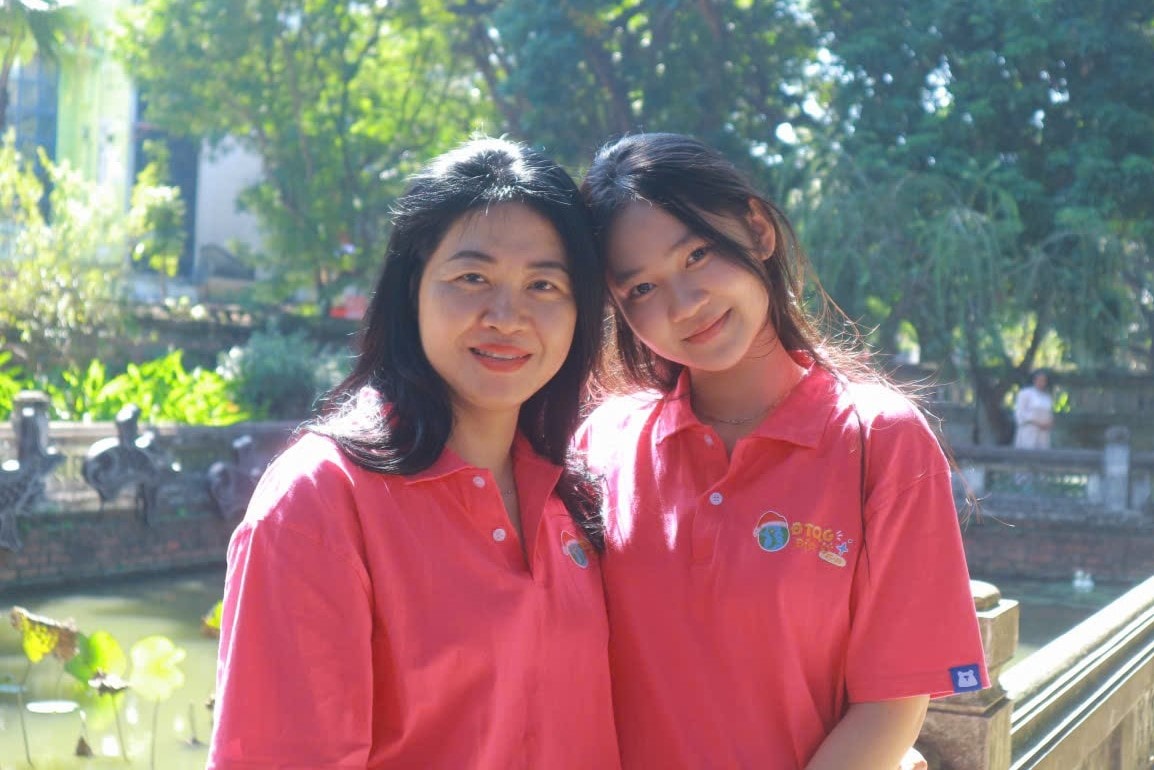 Mai Trúc cùng cô Nguyễn Thị Hoa Huệ - Chủ nhiệm đội tuyển Địa lý, Trường THPT chuyên Phan Bội Châu. Ảnh: Nhân vật cung cấp