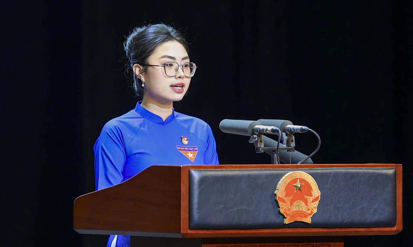 Tại lễ kỷ niệm, nữ sinh Hà Gia Linh vinh dự đại diện thanh niên Việt Nam, phát biểu. Cô hiện là sinh viên khoa Luật Quốc tế (Học viện Ngoại giao) sở hữu thành tích học tập ấn tượng với 8.0 IELTS, GPA 3.5.