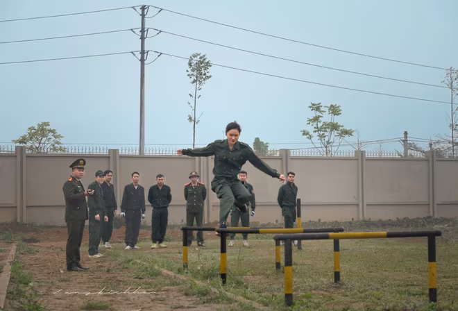 Đại úy Nguyễn Thu Hương cùng đồng đội trên thao trường huấn luyện sỹ quan bảo vệ tiếp cận