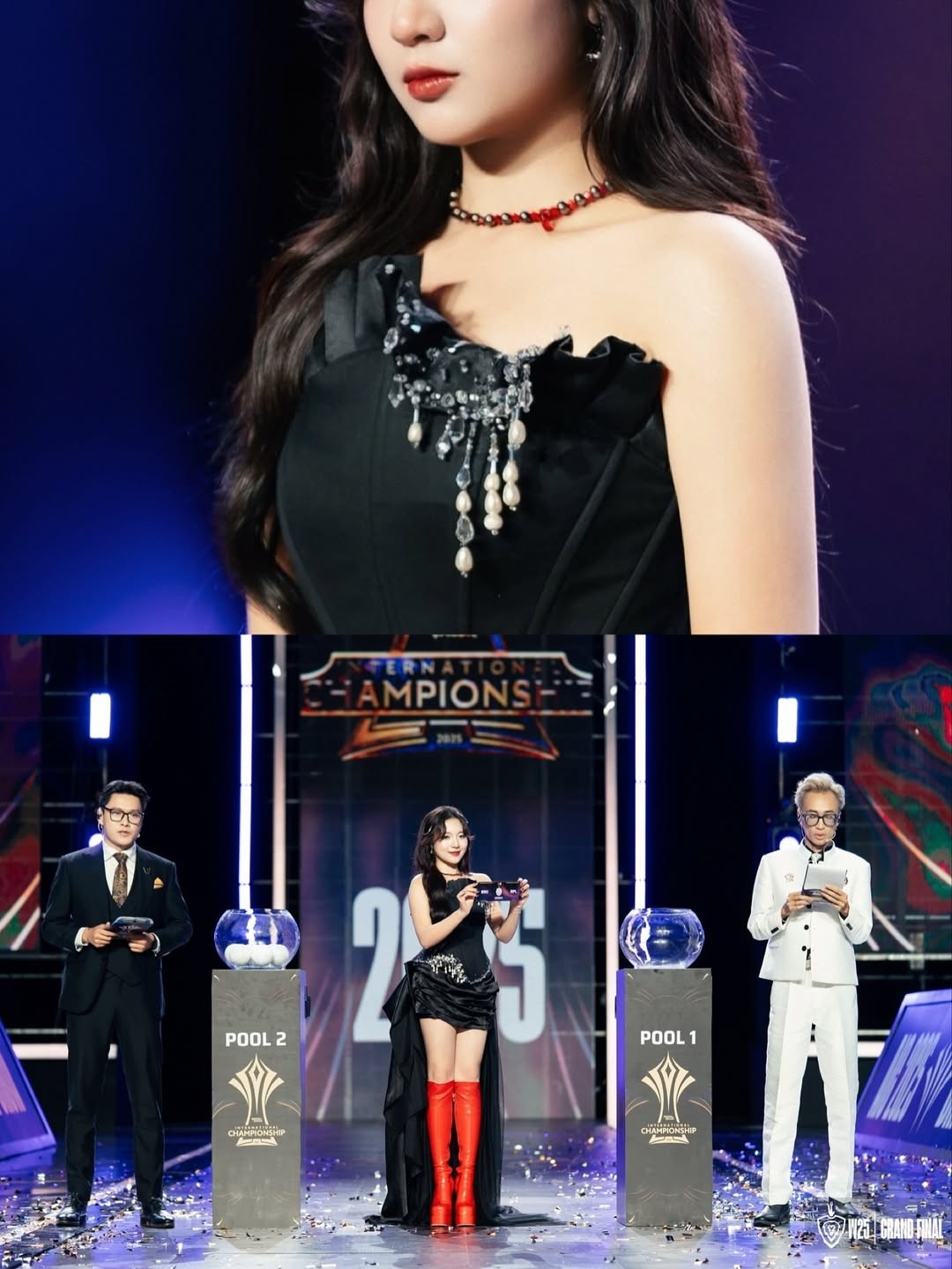Sự kết hợp giữa gam màu đen huyền bí và sắc đỏ cuồng nhiệt không chỉ tôn lên nhan sắc và vóc dáng của nữ MC mà còn hoàn toàn phù hợp với không khí đỉnh cao, kịch tính của một trận Chung kết Esports. (Ảnh: IGNV)