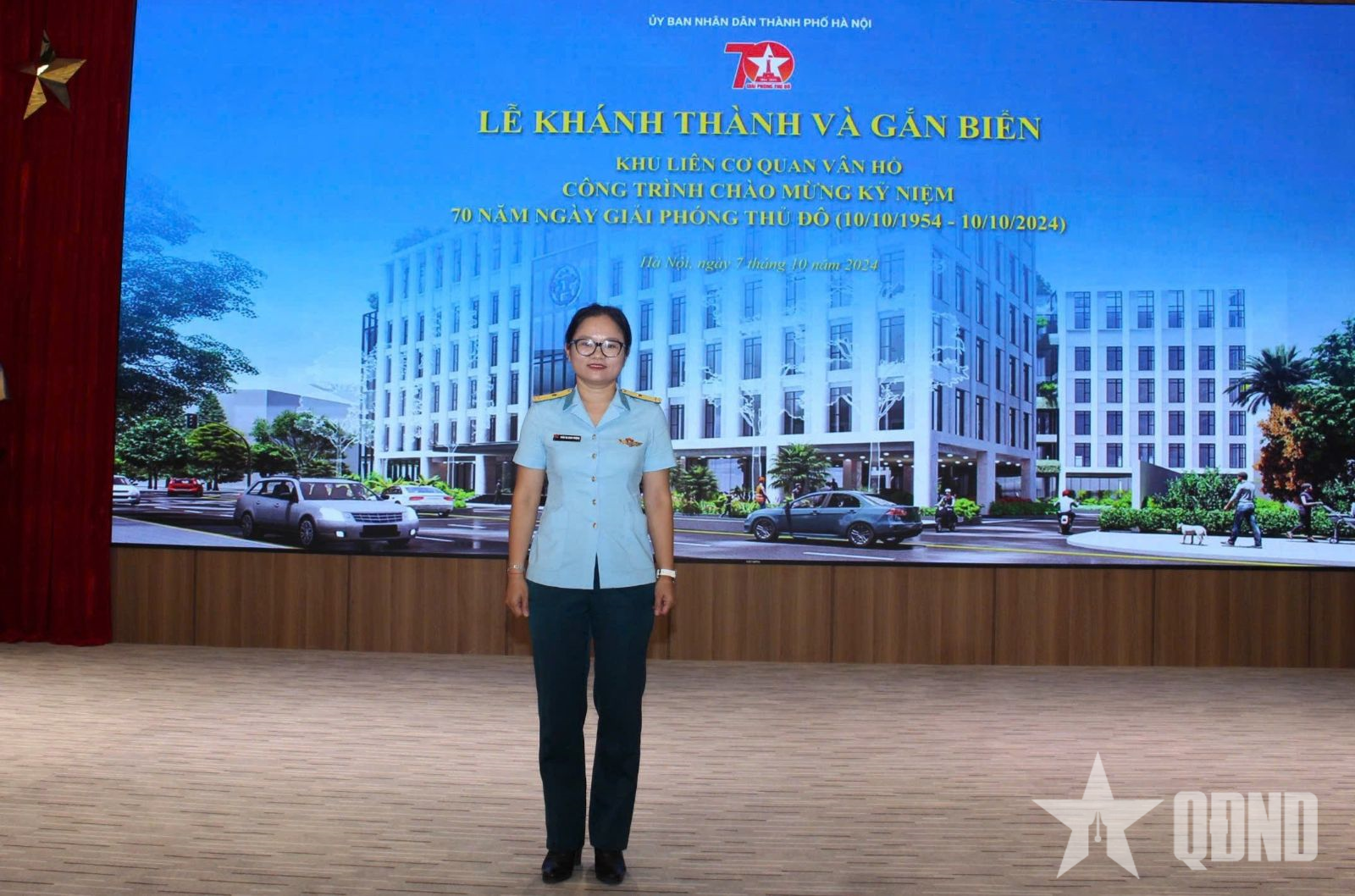 Thiếu tá Trần Thị Minh Phượng tại Lễ khánh thành và gắn biển Khu liên cơ quan Vân Hồ.