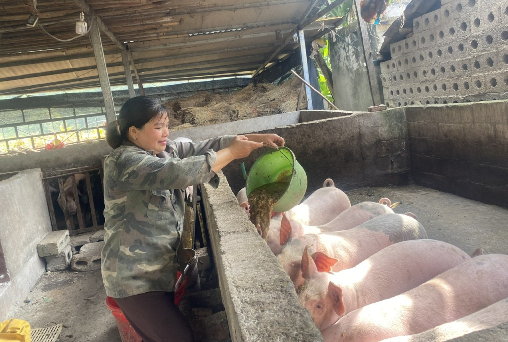 Không làm manh mún, nhỏ lẻ, qua thời gian dài từ kinh nghiệm chăn nuôi, năm 2015 chị Thủy vay vốn xây dựng chuồng trại chăn nuôi lợn và trâu vỗ béo với quy mô ban đầu hơn 15 chuồng, nuôi hơn 3 lợn nái, 20 lợn thịt và 3 con trâu vỗ béo. Tận dụng nguồn thức ăn tại chỗ từ rau lang, đỗ nho nhe trồng xen canh cây ngô chị Thủy học hỏi qua các lớp tập huấn về kỹ thuật ủ thức ăn, vệ sinh chuồng trại, phòng chống dịch bệnh… Từ đó, chuồng trại của gia đình phát triển ổn định, cho thu nhập. Có thu nhập từ bán lợn và trâu chị Thủy lại tái đầu từ xây dựng chuồng trại và mua con giống. Đến nay, gia đình có 3 khu chuồng trại, trong đó, 1 khu tại gia đình và 2 khu chuồng trại tại khu đất của gia đình với quy mô mỗi khu chuồng trại hơn 20 - 30 lợn thịt; duy trì nuôi 3 - 5 con trâu vỗ béo/năm. Hằng năm, xuất bán 2 - 3 lứa lợn thịt, bán con giống… cho thu nhập trên 200 triệu đồng sau khi trừ các chi phí. Cuộc sống kinh tế từ chỗ thoát nghèo đến nay đã trở nên khá giả, nuôi 2 con đang học đại học.
