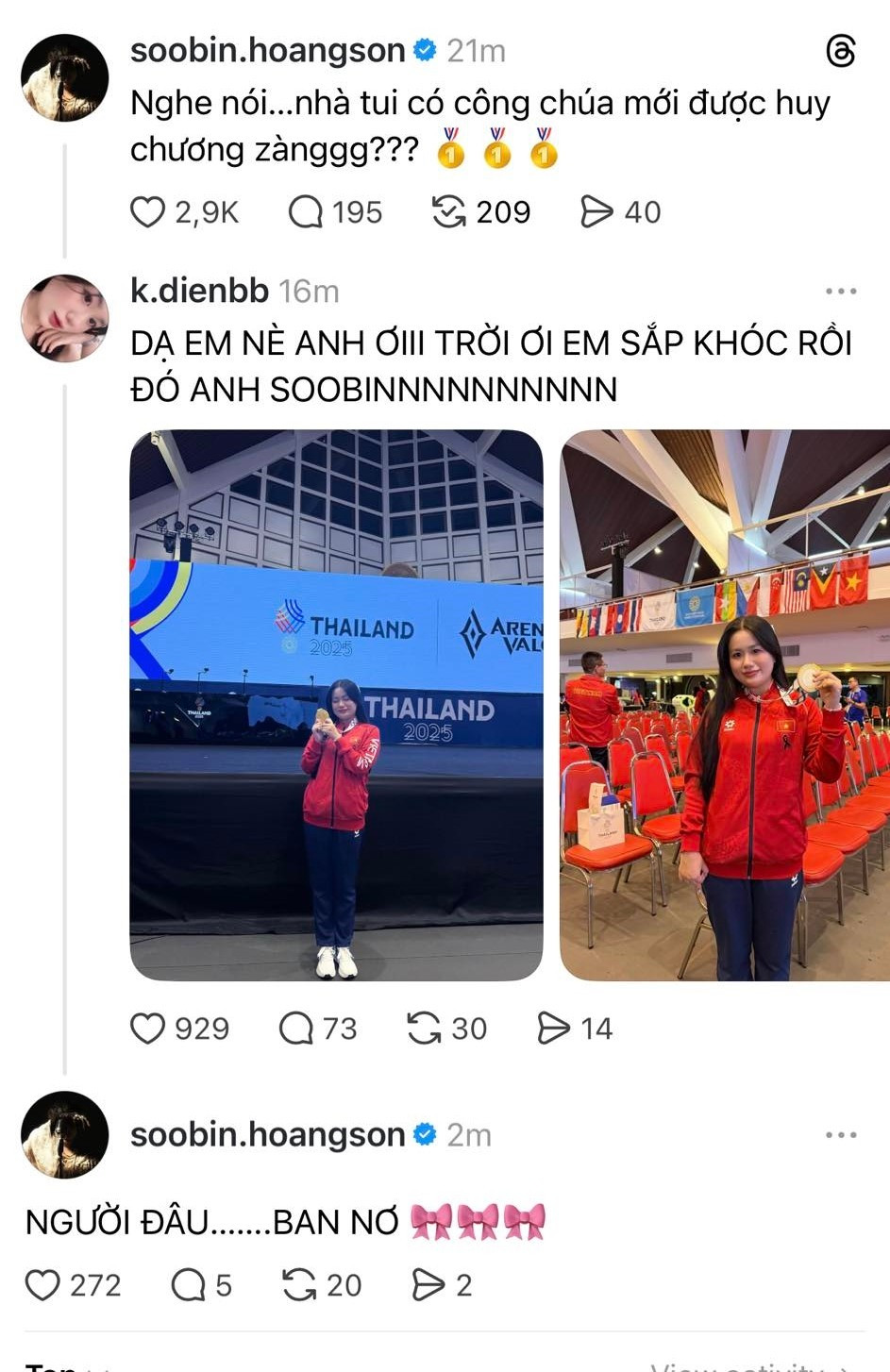 SOOBIN chúc mừng tuyển thủ Kỳ Duyên đạt HCV tại SEA Games 33.