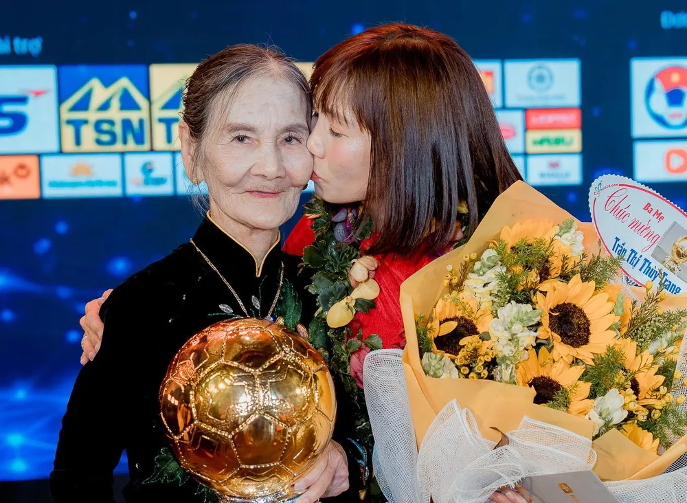 Quả bóng vàng Việt Nam và nụ hôn cho mẹ. Ảnh: CCT.
