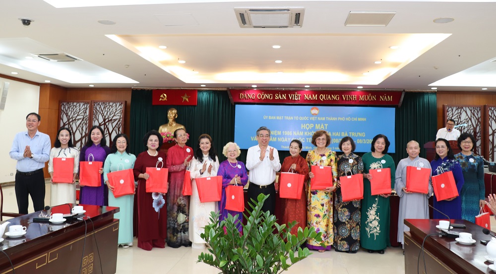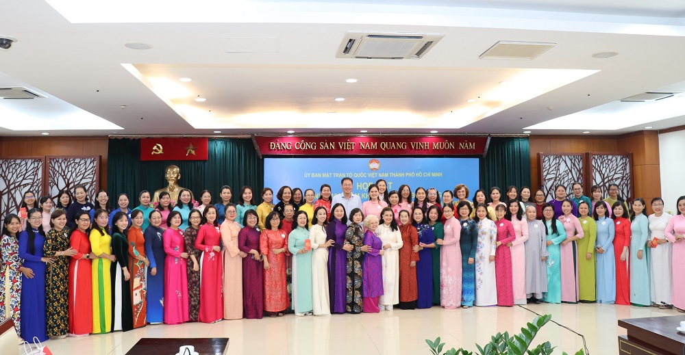 Buổi họp mặt nhằm tôn vinh đóng góp của nữ cán bộ trong hệ thống MTTQ TP.HCM, đồng thời tạo diễn đàn để cán bộ Mặt trận các cấp trao đổi kinh nghiệm trong công tác tiếp xúc cử tri, vận động bầu cử và tổ chức mạn đàm tiểu sử người ứng cử.