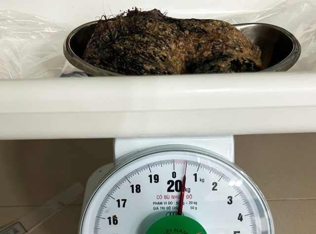 Búi tóc được lấy ra từ dạ dày bệnh nhi, nặng 0,5 kg.