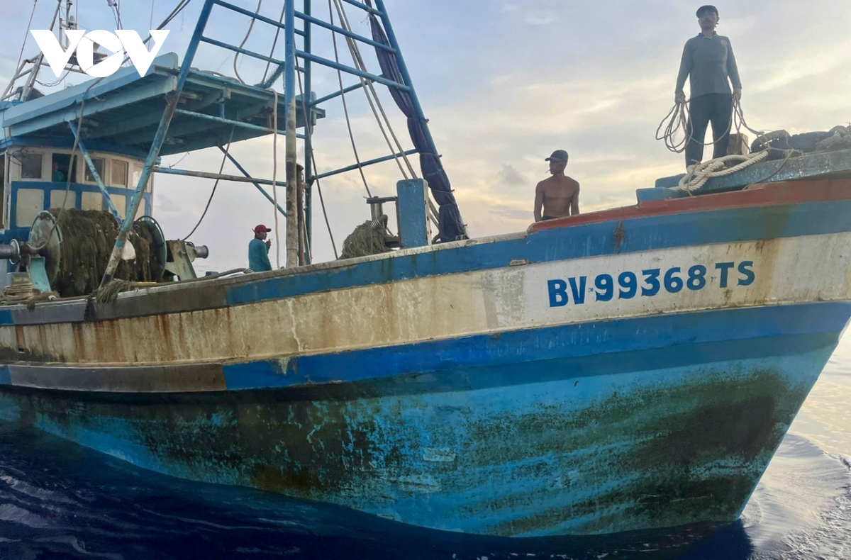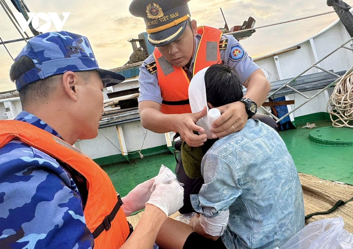 Đến 7h30, huyết áp và thân nhiệt nạn nhân trở lại bình thường, vết thương được cầm máu, sát khuẩn, băng bó an toàn. Các nhân viên y tế tiến hành cấp thuốc, băng gạc, sữa và hướng dẫn ông Đào Văn Quỳnh là thuyền trưởng cùng 8 thuyền viên cách chăm sóc, đưa ngư dân bị thương vào bờ điều trị để bảo đảm an toàn.