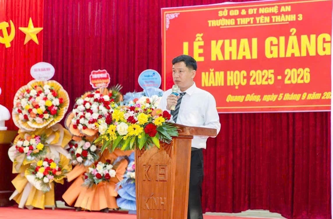 Hiệu trưởng trường Yên Thành 3 - Phan Tất Khang trong dịp lễ Khai giảng năm học mới.