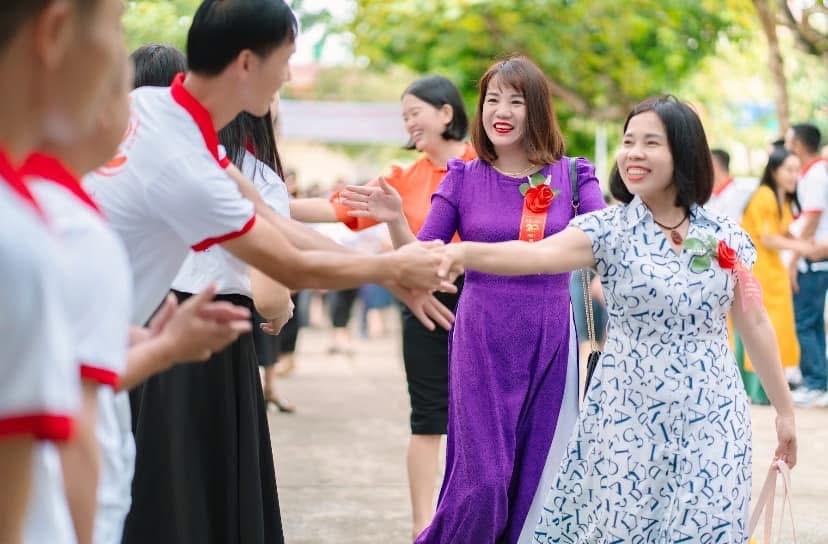 Các thầy cô giáo hân hoan ngày trở lại mái trường thân yêu.