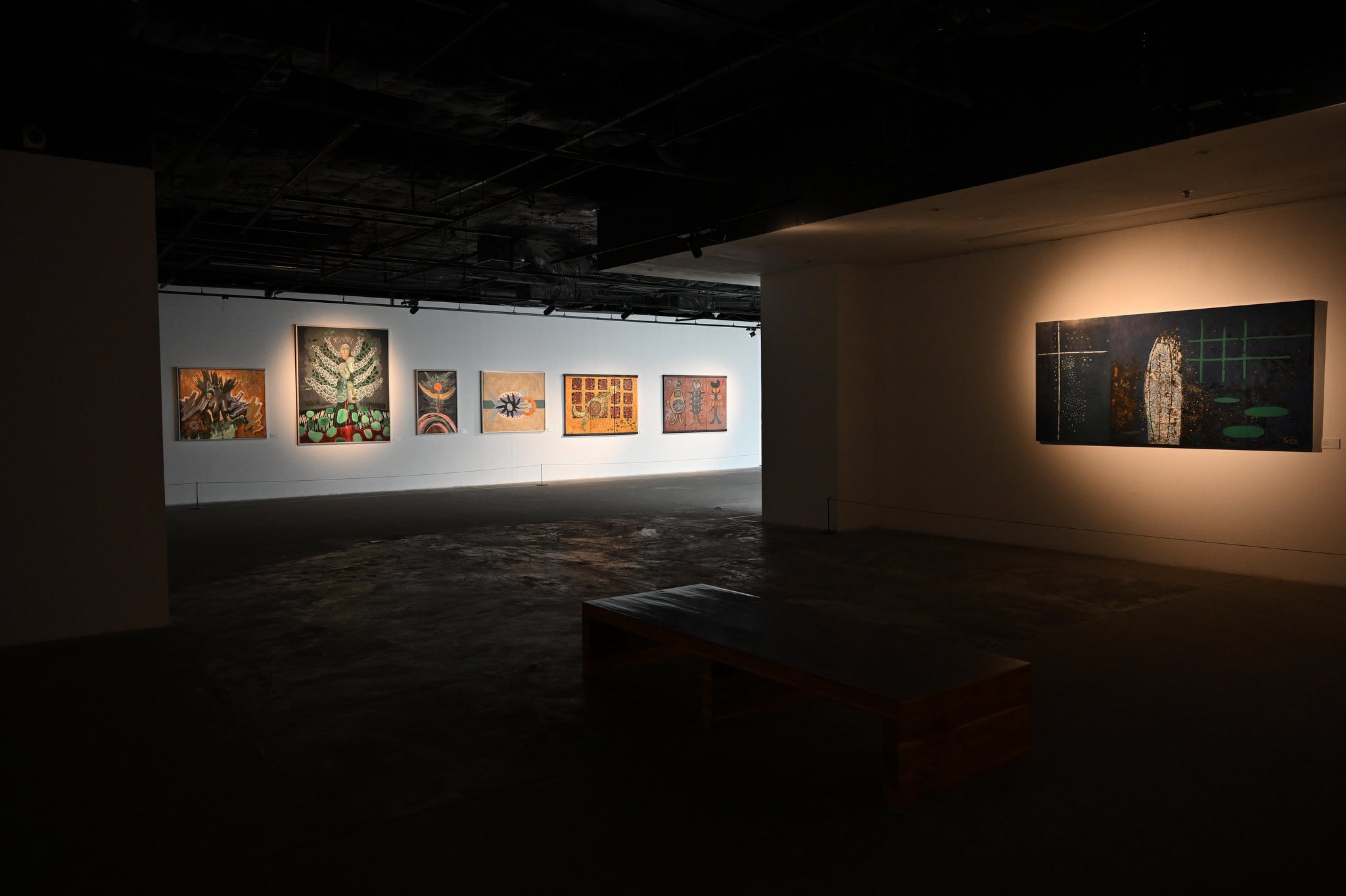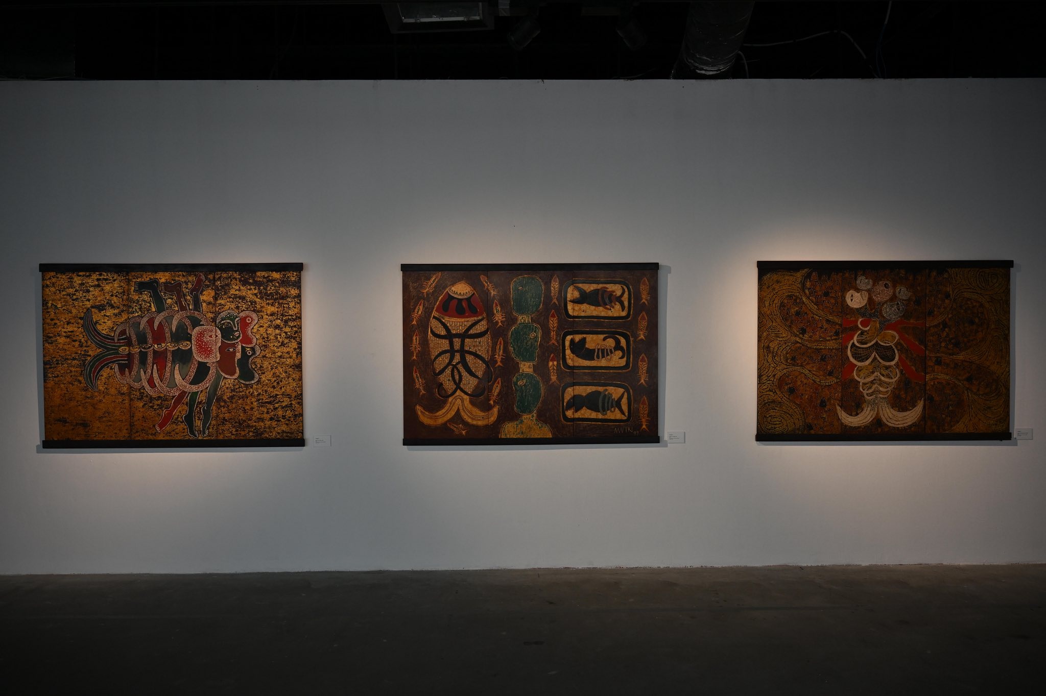 Các cụm trưng bày tạo không gian đối thoại giữa ba cá tính hội họa độc lập: Ca Lê Thắng, Lý Trực Sơn và Đào Minh Tri.