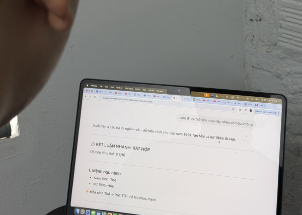 Cũng vì nghe lời phán của ChatGPT mà Lan và Minh (cùng ở Hà Nội) đã suýt bỏ nhau. Chuyện là, trong lúc đùa vui, Lan hỏi ChatGPT xem người sinh năm 1999 có hợp với người sinh năm 2000 không. Câu trả lời chung chung của AI, rằng hai tuổi này “có thể gặp một số xung khắc trong quan điểm, cần nỗ lực để hòa hợp” khiến Lan chột dạ.