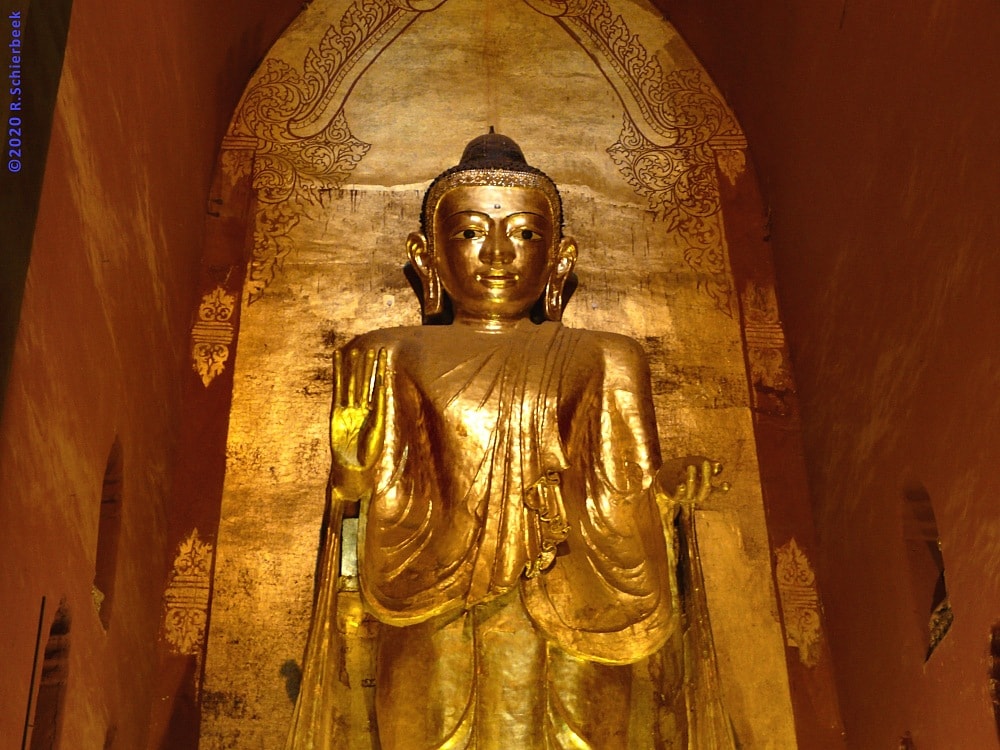 Tượng Phật Câu Na Hàm bằng vàng ròng – một trong những biểu tượng tôn kính tại tại chùa Ananda, Myanmar.