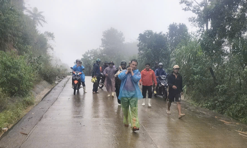 Sạt lở kèm mưa lớn khiến đất đá sau đó liên tiếp sạt trượt, gây nguy hiểm cho lực lượng làm nhiệm vụ. Các cán bộ, chiến sĩ công an cùng dân quân, người dân địa phương dùng cuốc, xẻng và tay không đào bới từng lớp bùn đất để tìm kiếm nạn nhân Hồ Văn B. (SN 1987, trú tại thôn 4) bị mắc kẹt trong căn nhà đổ sập do sạt lở.