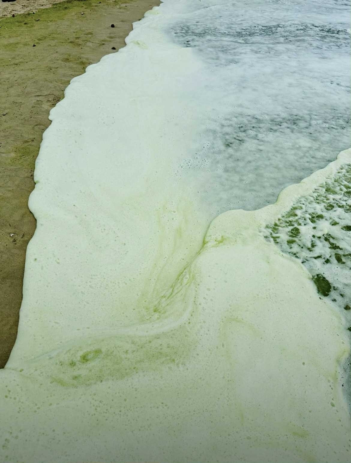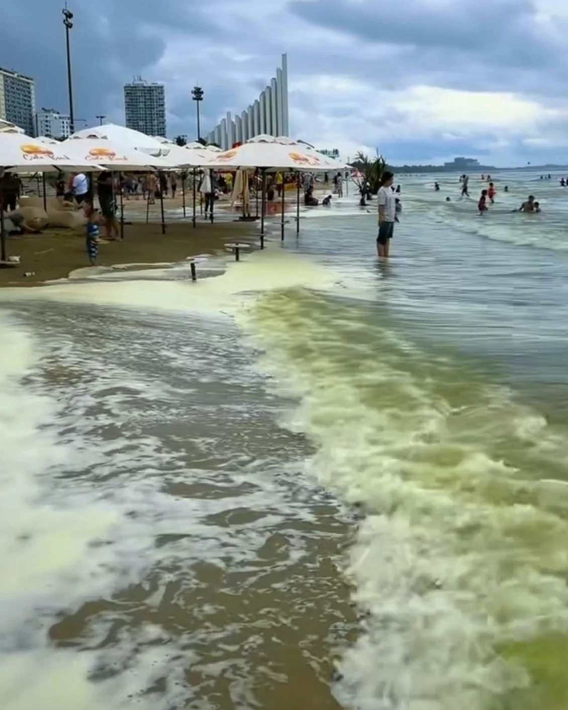 Trước đó, ngày 25/10, mạng xã hội lan truyền hình ảnh và video ghi lại cảnh nước biển tại khu vực Bãi Sau (phường Vũng Tàu) chuyển sang màu xanh lá cây bí ẩn. Ảnh: Znews.