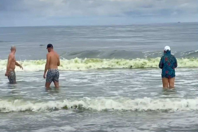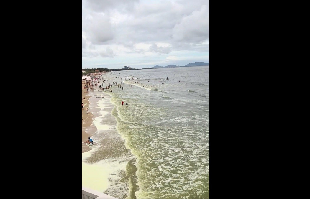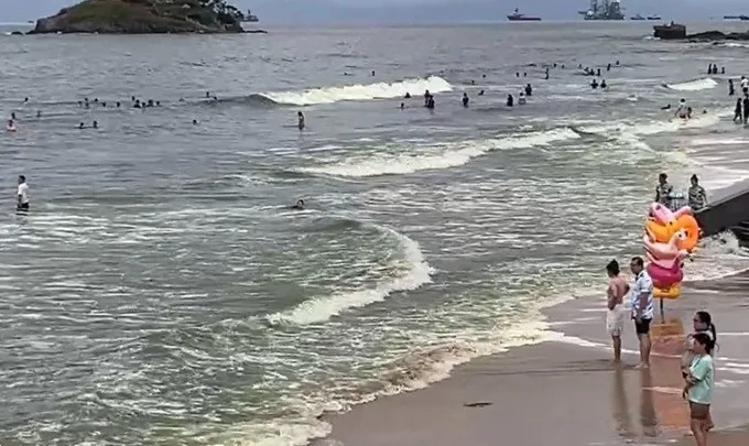 Sự việc thu hút sự quan tâm của nhiều người dân và du khách. Hiện tượng này chỉ xuất hiện một thời gian ngắn, đến hôm sau thì nước biển trở lại bình thường. Ảnh: Znews.