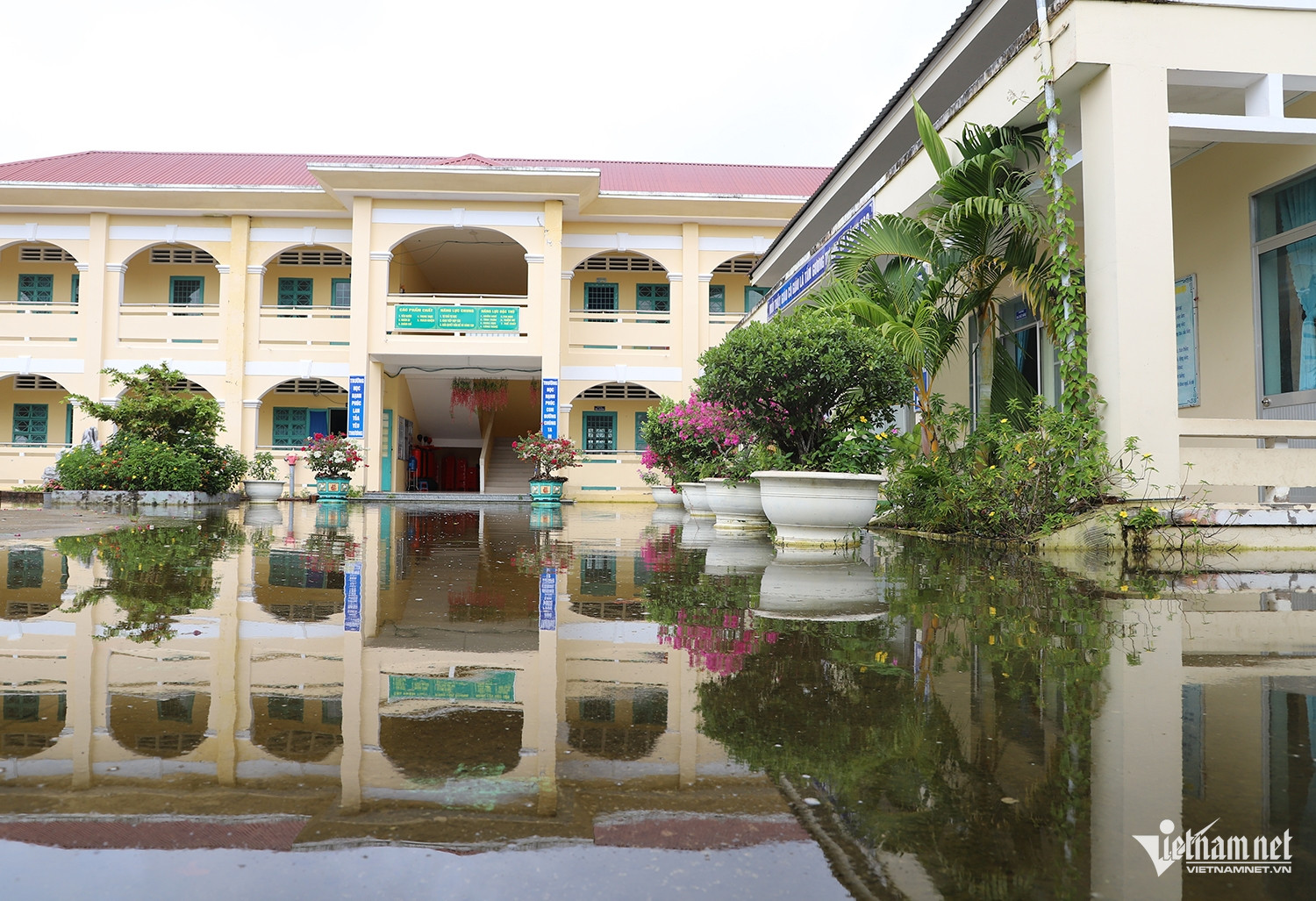 Theo vị hiệu trưởng, có những ngày hơn 100 học sinh nghỉ học, không phải vì lười mà bởi cha mẹ các em còn phải tát nước chống ngập, không thể đưa con đến trường. “Trường phải ra thông báo cho học sinh nghỉ một tuần. Nước rút dần, ngày 6/11, các con đi học trở lại”, thầy Hào nói.