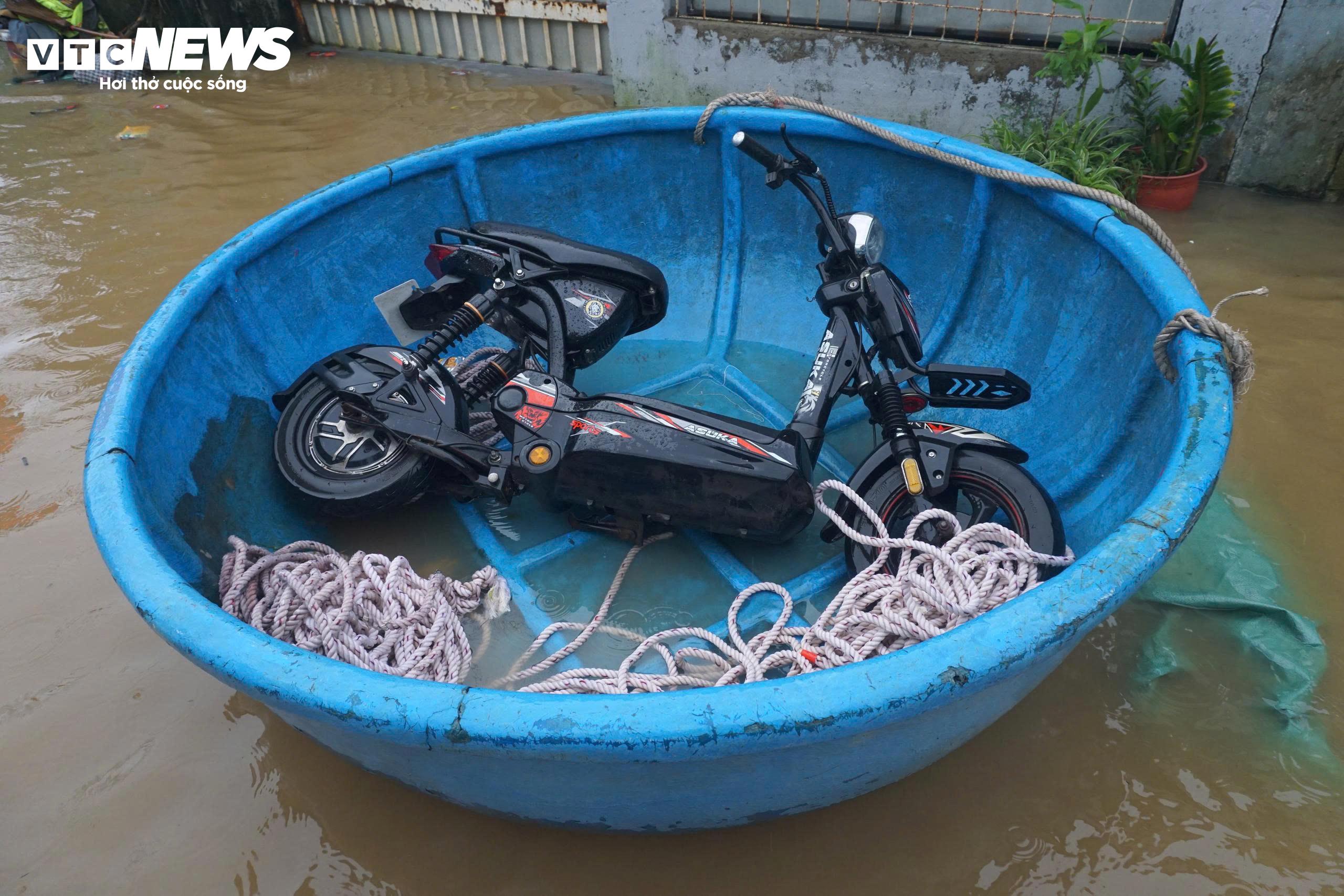 Nhiều phương tiện như xe điện được bỏ trên thúng để chở ra ngoài.